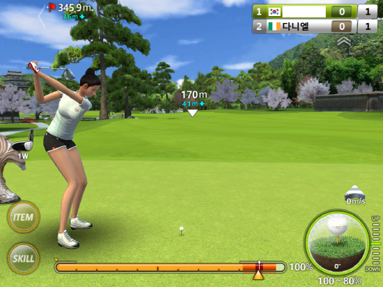 사실 스포츠게임은 다가가기 어렵다. 왠지 스포츠의 룰을 잘 알아야 할 것 같고, 어렵고 ‘있어보이는’ 전문 용어에 기가 죽기도 한다. 하지만 골프스타는 우선 쉽다. 기본적인 플레이는 화면 터치를 통해 타구를 하는 방식이다. 아래의 바에서 타구 정확도와 거리를 설정할 수 있다. 아마 고양이도 마음만 먹으면 골프스타로 골프를 배울 수 있을 것이다.