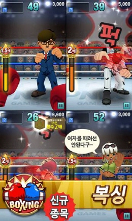 새롭게 추가되는 복싱은 화면에 나오는 캐릭터를 터치로 때려서 KO시키는 방식이다. 조작방식은 간단하지만 중간중간에 가격해서는 안 되는 여성캐릭터가 등장하기 때문에 순발력이 필요하며, 피버게이지 100%일 때 발동하는 피버타임에는 연타가 가능하기 때문에 스트레스 해소에는 제격이다.