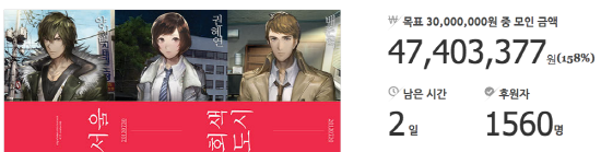 투자금액을 모으는데 성공하더라도 국내에서는 의미있는 금액을 모으기가 힘듭니다. 성공한 킥스타터의 펀딩 금액이 몇억에 가까운 반면, 국내에서는 굉장히 크게 성공한 게임의 프로젝트가 1000만원대라는 것을 보면 알 수 있는데요,