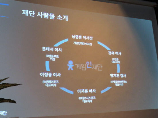 한게임 설립을 한 3인방은 남궁훈 이사장와 재단 이사인 문태식 마음골프 대표와 김범수 카카오 의장이다. 김범수 카카오 의장은 이사로 참여하지 않았지만 김 의장과 벤처지원 사업을 같이 하는 임지훈 케이큐브벤쳐스 대표가 재단 감사가 되었다. 이정웅 선데이토즈 대표와 이지훈 데브시스터즈 대표 역시 이사로 게임인재단에 한 뜻을 더했다. 이들 역시 한게임 시절 함께했던 인연이 지금까지 이어진 것이다.