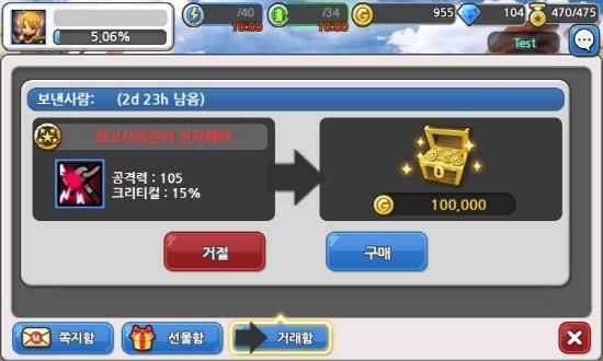 이번 업데이트를 통해 그냥 버리기엔 아쉬운 아이템들을 다른 유저와 골드로 거래할 수 있게 되었다. 하지만 무분별한 거래를 막기 위해 아이템 거래는 유니크(5성) 이상 아이템부터, 사령관 레벨 10레벨 이상부터 가능하다. 이 이벤트는 1월 28일부터 2월3일까지 일주일에 걸쳐 진행된다.
