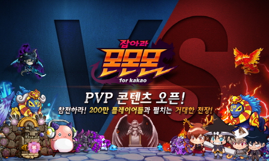 한편, ‘몬몬몬 for Kakao’는 친근하면서도 완성도 높은 2D 그래픽과 고유의 손맛, 다대다(多對多) 전투 시스템, 400여종 이상의 몬스터를 수집하고 육성하는 재미요소로 인기를 얻고 있다.