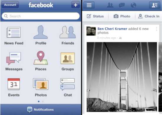 ▲ 페이스북 모바일 앱 탄생 초기와 현재