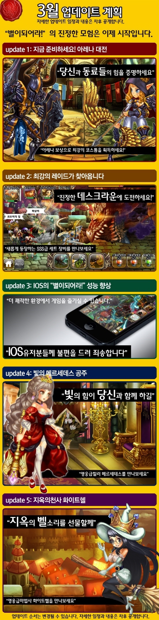 게임빌(대표 송병준, www.gamevil.com)이 흥행 판타지 모험 RPG ‘별이되어라!’의 첫 번째 업데이트를 진행했다고 6일 밝혔다.