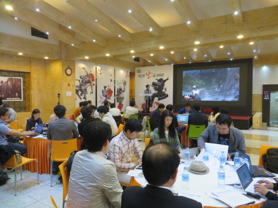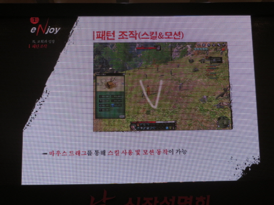 신 본부장은 ‘정통 무협 MMORPG’임을 보여주기 위해 실제 레슬링 영상과 게임 속 플레이 화면을 보여주기도 했다. 그는 “쌩뚱맞을 수도 있다. 하지만 게임 내에는 실제 사용되는 무술과 무협이 거의 현실과 흡사하게 잘 구현되어 있다”고 이야기했다.