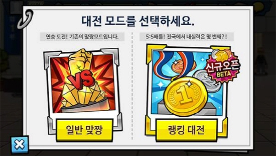 이번에 업데이트 된 ‘맞짱 랭킹대전’ 의 베타 업데이트는 실제로 적용될 정식 버전의 테스트 버전으로, 기존의 3 대 3 일반 대전 스타일과는 차별화된 5 대 5로 진행 가능한 랭킹 대전 시스템을 처음 선보였으며, 테스트버전 업데이트 기념으로 “맞짱 랭킹대전 BETA” 오픈 이벤트를 개최하여 1위 SSS급 사원카드, 2위 SS급 사원카드, 3위는 SSS급 사무용품을 지급 하는 등 파격적인 보상을 유저들에게 제공할 방침이다.