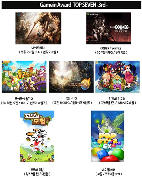 TOP 리스트 : Night Watche, CODEX:the Warrior, 모여모여 돌격대, 엘사이더, 위기의 친구들, POP STAR