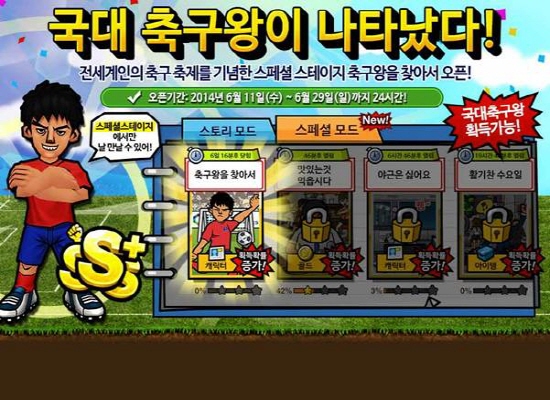 한편, '무한상사'는 오는 2014년 브라질 월드컵을 기념하여 스페셜 스테이지를 오픈 하였으며, 오는 28일까지 월드컵 기념 스페셜 스테이지에서만 획득 가능한 SSS+ 사원 '국대축구왕' 또한 새롭게 선보였다.