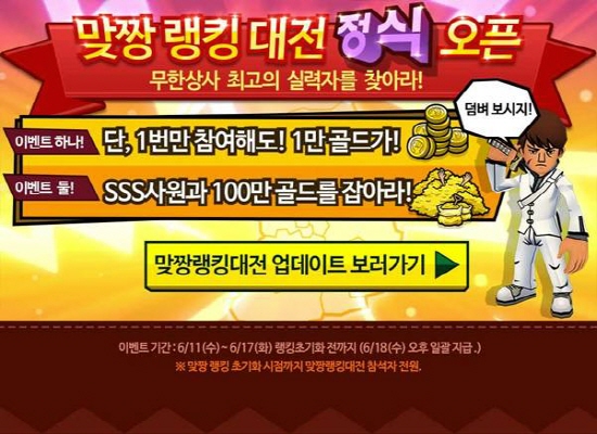 랭킹에 따라 SSS급 사원카드 및 전설급 사무용품 등 최 상위 아이템을 지급할 예정이다.