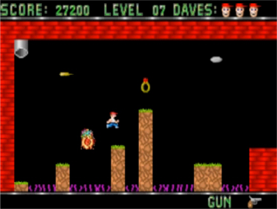한국에서 ‘위험한 데이브’라는 이름으로 많이 알려져 있는 게임이 있다. 원래 이름은 ‘Dangerous Dave’라는 게임이다. 그런데 데이브라는 사람이 왜 위험한지 또 누구인지도 잘 모르겠지만, 게임은 재미있다. 비교적 적은 용량에 저 사양의 컴퓨터에서도 잘 돌아갔기 때문에 아마도 널리 퍼지는데 도움이 됐을 것이다.