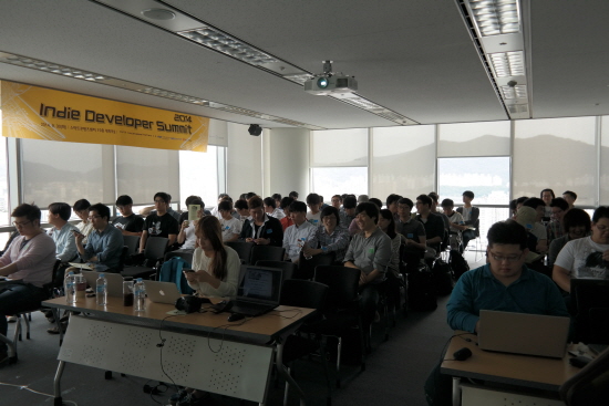 이어 변기섭 책임은 행사가 진행되는 스마트콘텐츠센터에 대해 간단히 설명했다. 그는 “2012년 5월 문화체육관광부와 경기도, 안양시의 투자로 만들어진 센터로, 2014년에는 미래창조과학부 산하로, 어플리케이션 개발자들이 포함된 회사를 중심으로 100억원가량의 예산으로 운영되고 있다. 현재 50개의 룸을 운영하고 있으며, 사무실은 2년부터 4년까지 지원한다. 제작지원은 최대 4억까지 가능하고, 상시 컨설팅도 한다”고 설명했다.