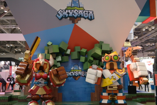 ‘크로스파이어’로 유명한 탓인지 남성적인 느낌이 강했던 스마일게이트는 이번 지스타에서 화사한 부스는 물론, 귀여운 온라인 게임을 공개했다. 바로 영국의 개발사 레디언트 월드가 개발한 샌드박스 게임 ‘스카이사가’다.