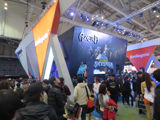 스마일게이트는 지스타 2014에 80부스 규모로 참석했다. 지난 7월 중국 상하이에서 열린 차이나조이에서 이미 선보인 바 있는 기본 구조물을 프랙탈 삼각형으로 제작, 기업 아이덴티티를 표현했다. 부스에는 ‘로스트아크’, ‘스카이사가’, ‘아제라’, ‘프로젝트 Puppy’ 등 4종의 게임들의 특성에 맞게 꾸며졌다.