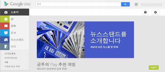 구글코리아는 오늘 스마트폰과 태블릿을 통해 뉴스 매체를 한 곳에서 읽을 수 있는 새로운 애플리케이션 ‘구글플레이 뉴스스탠드’를 출시했다. 잡지, 신문, 블로그, 뉴스 웹사이트를 구독해, 모바일 기기에 최적화된 화면으로 기사를 읽을 수 있다. 구글플레이 뉴스스탠드는 기존 구글플레이의 ‘앱’, ‘게임’, ‘영화’, ‘도서’에 이어 다섯번 째 디지털 콘텐츠로 들어가며, 구글이 제휴한 매체를 만날 수 있다.