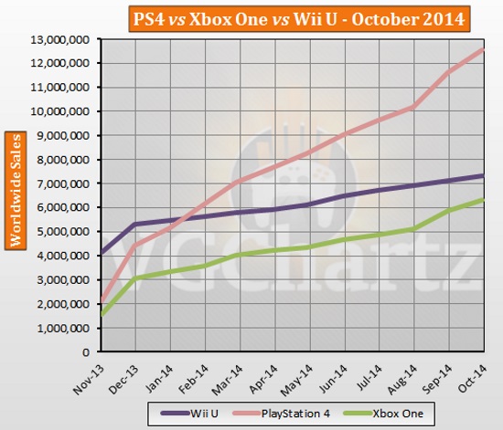 모바일 게임이 평정하다시피 하게 된 최근의 일본 게임시장 때문에 닌텐도의 전망을 어둡게 보는 시각이 많지만 일본에서 닌텐도 3DS는 1700만대를 돌파하고 있으며 지금도 매주 20만대씩 판매되고 있다. 모바일 게임 붐의 직격탄을 맞은 것은 PS진영으로, 2000 만대가 팔린 PSP와 달리PS VITA는 300만대로 매우 고전하는 중이고 PS4 역시 WiiU의 절반에 못 미치는 87만대에 머무르고 있다.
