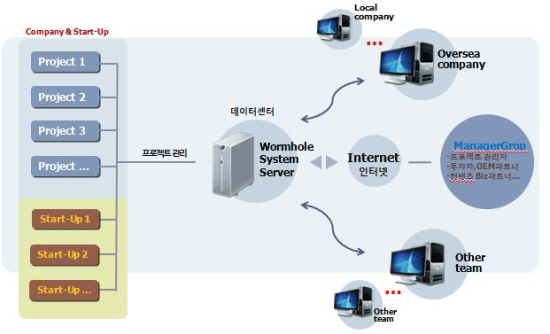 GDC 이후 더욱 많은 러브콜을 받고 있는 웜홀은 순수 100% 한국에서 개발한 프로젝트 제작 공정관리솔루션이다. 4년 앞서 개발된 샷건이 매년/100명 기준 1억 사용료라면, 웜홀은 3000만 원대로 비용과 품질에서 탁월한 경쟁력을 갖춘 것. 2003년 창업해 10년간 개발 어려움 속에서 문화부와 미래부의 지원속에 좋은 평가를 받아 글로벌 시장에서 기술력 월드베스트 5에 올랐다.
