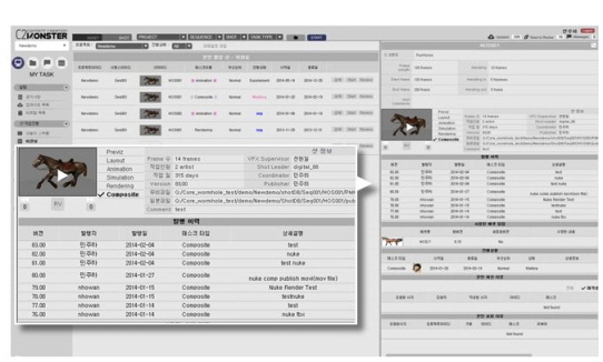 공정관리솔루션은 뭘까. 최 대표는 “영화나 애니메이션, 게임, 방송, 컴퓨터그래픽 제작 과정에서 콘텐츠 제작 전 과정을 통합적으로 파악하는 공정관리솔루션이다. 메시지나 리뷰, 스케줄관리, 통계, 버전관리, 노드뷰 등이 주요 기능”이라며 “그동안 부분적 지원이 있었지만 한국에서 통합툴은 웜홀이 처음”이라고 설명했다.