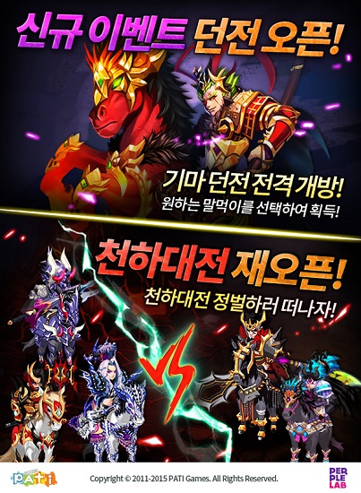 ㈜파티게임즈(대표 이대형, KOSDAQ 194510)는 ㈜퍼플랩(대표 조종남)이 개발하고 자사가 서비스하는 슈팅 RPG ‘무한돌파삼국지 for Kakao’가 인기 콘텐츠 ‘천하대전’을 다시 도입하고 ‘기마 시스템’을 전격 개편한다고 금일(29일) 밝혔다.