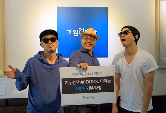 재단법인 게임인재단(이사장 남궁훈)은 30일 힙합듀오 ‘지누션’의 멤버 지누, 그룹 DJ DOC의 이하늘과 총 1억원의 기부금 약정식을 가졌다.