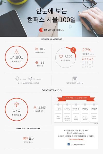 캠퍼스 서울의 100일을 인포그래픽으로 살펴보면 아래와 같다.