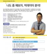 이번 데이터분석 부트캠프는 11월 24일 김영우 (주)히든:그레이스의 통계분석가가 진행하는 데이터분석 프로젝트의 수행절차와 데이터 수집의 이해에 관한 특강을 시작으로, 11월 25일에는 인포그래픽 전문기업 뉴로어소시에이츠 데이터디자인팀이 현업에 많이 쓰이는 데이터 디자인과 공공데이터의 활용 요령을 설명한다.
