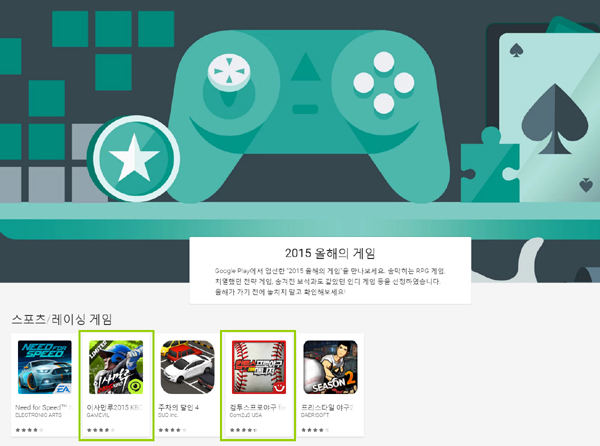 이번에 게임빌의 ‘이사만루2015 KBO’와 컴투스의 ‘컴투스프로야구 for 매니저 시즌3(이하 ‘컴프매 시즌3)’는 스포츠·레이싱 게임 부문에 이름을 올렸다. 두 작품 모두 3년 새 국내 시장에서 모바일 야구 게임 스테디셀러로 명성을 이어왔으며, 특히 ‘이사만루 시리즈’는 지난 해에 이어 2년 연속 선정됐다.