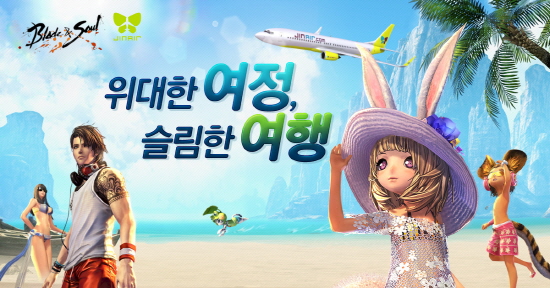 엔씨소프트(대표 김택진)는 진에어와 손잡고 자사의 인기 온라인게임 ‘블레이드 & 소울’(이하 블소) 제휴 프로모션인 '위대한 여정, 슬림한 여행' 이벤트를 12월 24일까지 진행한다. ‘블소’ 이용자는 희망하는 여행지와 비슷한 게임 속 지역을 찾아 스크린을 찍어 사연을 보내면 추첨을 통해 왕복 항공권을 받을 수 있다. 대상 여행지는 하와이를 포함 하노이, 마카오, 홍콩, 오사카이다. 또한, 진에어 항공권을 구매 인증하면 특별한 행운도 얻을 수 있다. 진에어는 오는 23일까지 국내외 총 27개 전 노선을 특가 판매하는 '슬림한 진' 이벤트를 진행한다. 프로모션 기간 내 진에어 항공권을 구매하면 추첨을 통해 게임 아이템이 지급된다.