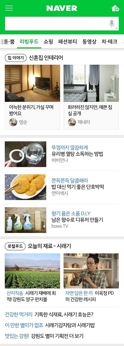 이번 캠페인은 강원도의 산지직송 대표 식재료인 시래기, 황태, 충청남도의 단호박, 우렁이를 시작으로 순창군, 제주도, 전라남도 등 다양한 지역의 식재료로 이어지며 향후 4개월 동안 진행된다. 개별 식재료에 대한 레시피, 손질법, 생산자의 생생한 스토리 등이 담긴 다양한 콘텐츠는 네이버 모바일홈 ‘리빙푸드’판에 신설되는 ‘로컬 푸드’ 영역에서 확인할 수 있다.