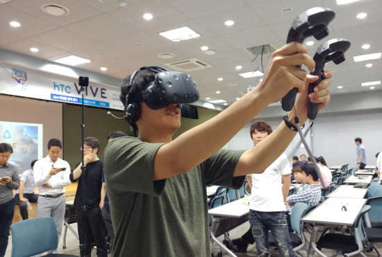 특히, 행사장에는 HTC 바이브 시연 공간이 마련돼, 참가자들은 HTC 바이브 헤드셋과 핸드컨트롤러를 착용해 게임을 직접 체험했다.