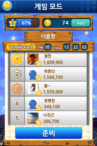 또한, ‘보석팡’에는 실제 친구들간의 점수 대결이 있다. 카카오톡에서 친구로 등록된 사람들끼리 점수가 기록된 랭킹이 있어 상대방의 점수가 수시로 바뀌는 상황을 보는 것이 흥미요소로 작용하고 있다.