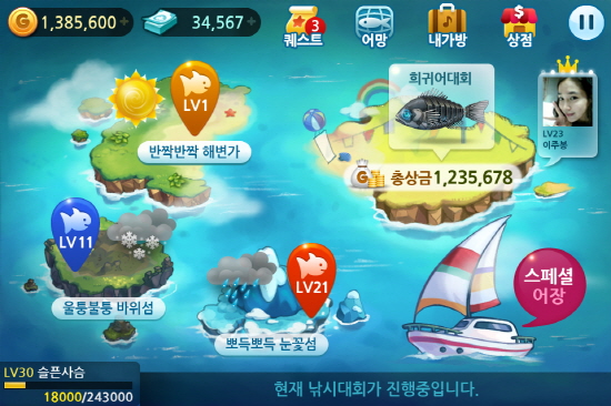 '피쉬 아일랜드'는 낚시를 소재로 한 게임이지만 기존 낚시게임들과는 달리 터치와 타이밍이라는 스마트폰 기기의 최대 강점을 극대화, 스마트폰에 최적화된 신개념 낚시게임을 표방하고 있다.
