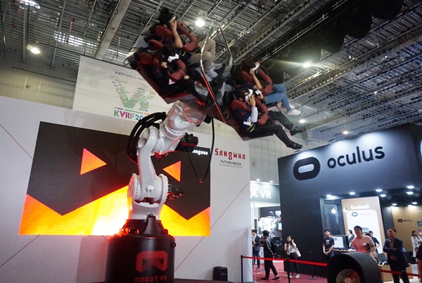 이번 전시회의 가장 큰 볼거리는 부스마다 즐비한 대형 어트랙션(체험형 놀이기구)였다. 삼성전자, KT, CJ 등 한국 대기업들은 저마다 대형 어트랙션을 전면에 내세워 관람객들의 눈길을 끌었다. 디바이스 보급율이 낮은 VR산업 초기에는 소비자들이 비용 부담이 적은 어트랙션을 선호한다는 점을 노린 것. 어트랙션을 탄 사람들의 환호와 비명으로 전시회장이 테마파크처럼 역동적인 분위기를 풍겼다.