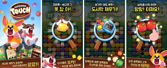 '애니팡 터치'는 같은 블록 2개를 터치해 제거하는 모바일 퍼즐 게임으로 과일 블록들의 화려한 색감과 시각 효과 등으로 터치감을 극대화한 것이 특징이다. 또한 2매치 터칭의 기본 규칙과 함께 선보이는 다양한 콘텐츠 역시 기대를 모은다.