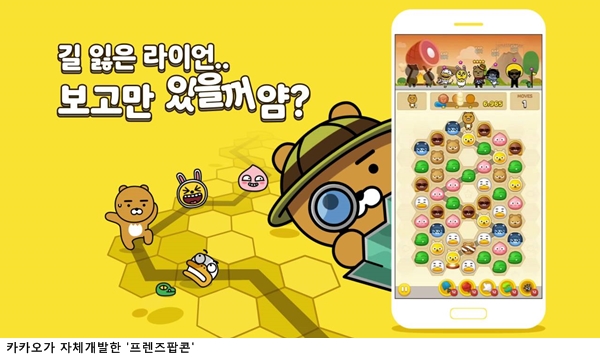 ‘프렌즈팝콘’은 익숙한 퍼즐게임에 카카오프렌즈 IP(지식재산권)가 결합한 캐주얼 게임이다. 이 게임은 각 캐릭터들의 개성을 살린 게임 요소와 다양한 코스튬의 카카오프렌즈 캐릭터 디자인으로 새로운 재미요소를 선사하고 있다.