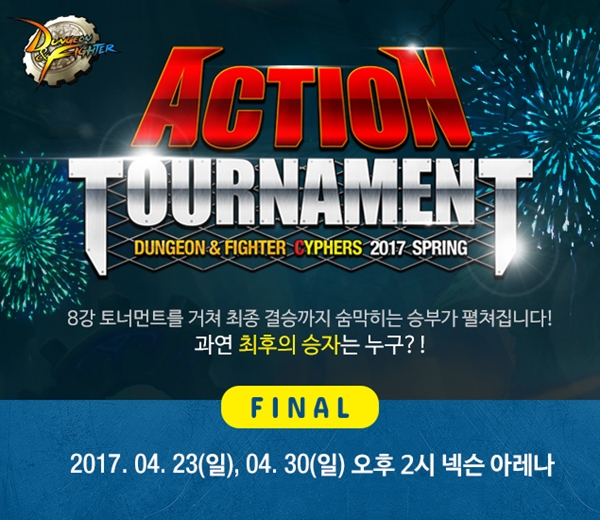 넥슨(대표 박지원)은 ‘던전앤파이터’와 ‘사이퍼즈’의 e스포츠 리그 ‘액션토너먼트 2017 SPRING(이하 액션토너먼트)’의 파이널 경기 일정을 공개했다고 14일 밝혔다.