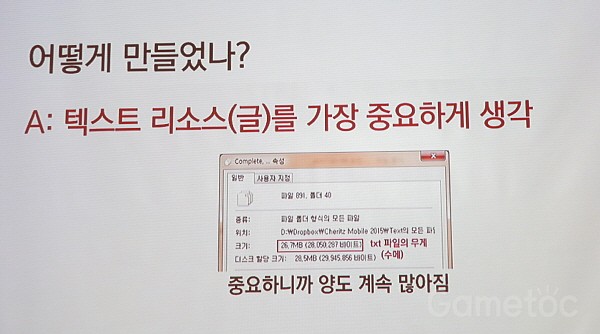 이 대표는 수상한 메신저를 개발하는 과정에서 2가지의 과제가 있었다고 설명했다. ‘텍스트가 많아도 지루하지 않게 하는 것’과 ‘텍스트를 이용하여 상호작용을 유도하는 것’. 간단명료한 해답은 없지만, 개발사 스스로 풀어가는 과정이 필요하다.