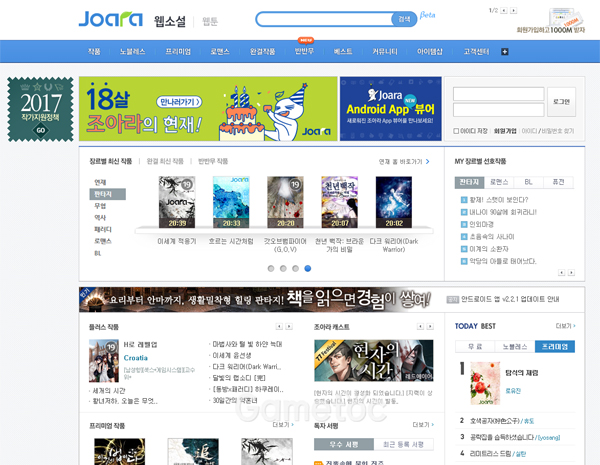 조아라는 한국 웹소설 시장을 말할 때 빼놓을 수 없는 사이트다. 이곳은 누구나 온라인에 작품을 올릴 수 있는 웹소설 플랫폼이다. 어느덧 서비스 18주년을 맞았다. 지금도 조아라에는 매일 2500여 편의 신작들이 연재되며, 하루 29만 명의 독자가 새로운 웹소설을 읽는다.