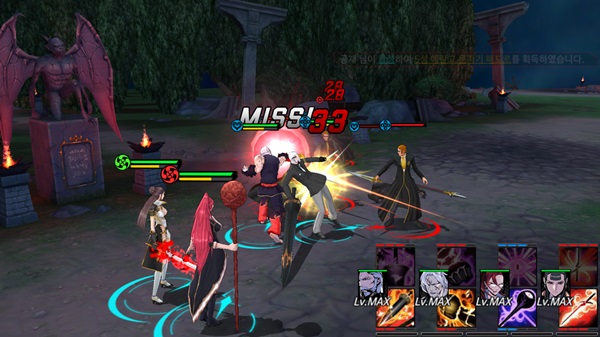 전투도 웹툰과 비슷한 느낌을 준다. 이 게임은 타격감을 최대한 높이기 위해 이펙트와 카메라워크를 사용한 것 외에도 효과음을 웹툰처럼 표현했다. 예를 들어 스킬을 시전하거나 명중시킬 때 ‘촤아아악’, ‘콰쾅’, ‘퍼억’ 등의 글자가 화면에 커다랗게 표시된다. 충분히 실제 효과음으로 표현할 수 있음에도 불구하고 이런 방식을 택한 것이 꽤 흥미롭다. 스킬을 사용할 때마다 등장하는 컷신에도 웹툰 느낌이 물씬 묻어난다.