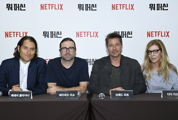 그는 22일 서울 CGV 청담씨네시티에서 열린 ‘워 머신’ 시사회 후 라이브 콘퍼런스에서 화상 연결을 통해 국내 취재진과 만났다. 라이브 컨퍼런스에는 브래드 피트와 연출과 각본을 맡은 데이비드 미쇼 감독, 제레미 클라이너와 디디 가드너 플랜비 엔터테인먼트 공동대표가 함께 참석했다.