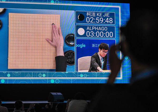 23일 중국 저장성 우전에서 치러진 알파고와 세계랭킹 1위 중국 바둑기사 커제 9단의 3번기 1국이 진행됐다. 이날 1국에서는 알파고가 289수만에 백 1집반 승을 거뒀다.