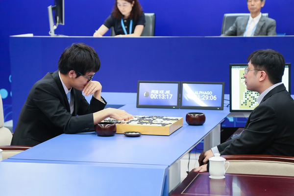 그러나 알파고는 무리한 공격을 펼치지 않으면서도 조금씩 커제 9단을 압도해 나갔다. 차분하게 대응하면서 집의 우위를 지켜나갔다. 지난해 이세돌 9단 때와 달리 커제 9단은 제한시간 1시간이 더 주어졌으나, 알파고를 뛰어넘지는 못했다.