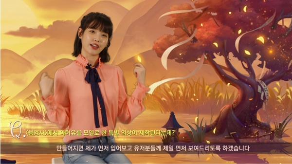 카카오는 아이유를 위해 특별 의상을 만들고, 이를 ‘음양사’에서 ‘카구라’ 캐릭터의 의상 아이템으로도 구현할 예정이다. 이 아이템은 한국 버전 뿐만 아니라 넷이즈를 통해 글로벌 버전에서도 등장한다. 아이유는 “얼마 전에 사극을 하기도 했었고, 저한테 한복이 잘 어울리는 편”이라며 “특별 의상이 만들어지면 제가 먼저 입어보고, 유저분들에게도 보여드리도록 하겠다”고 영상 인사말을 전했다.