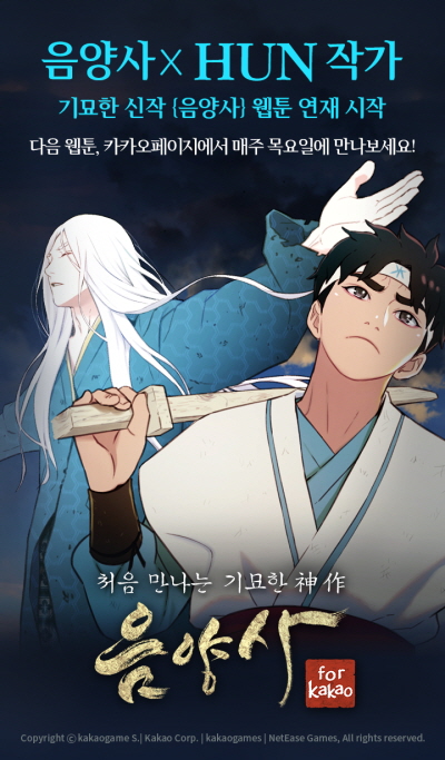 카카오는 올 8월 출시 예정인 모바일게임 ‘음양사 for kakao’와 유명 웹툰작가 HUN의 콜라보레이션 ‘음양사 브랜드 웹툰’ 연재를 시작했다고 13일 밝혔다.