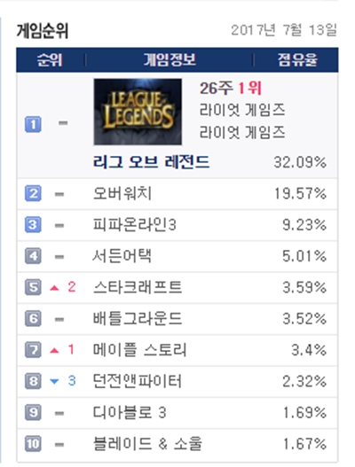 PC방 리서치업체 게임트릭스에 따르면 ‘배틀그라운드’는 13일 점유율 3.52%로 종합순위 6위를 차지했다. 전날 게임트릭스 차트에서 8위로 데뷔한 후 하루만에 2단계 뛰어올랐다. 5위인 ‘스타크래프트(3.59%)’와의 격차는 불과 0.07%p다. ‘배틀그라운드’는 7월 7일부터 게임트릭스가 제공하는 점유율 통계에 포함됐으며, 12일부터 차트에 정식 반영됐다.