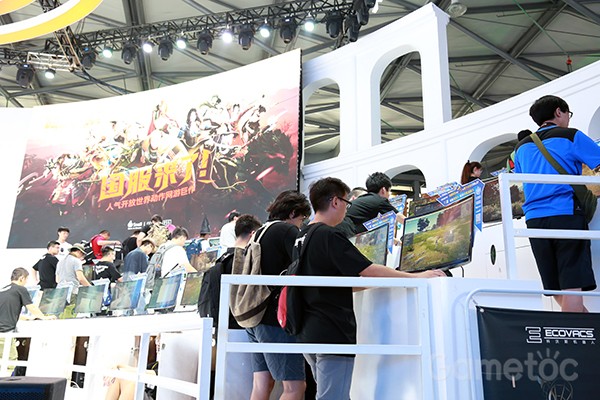 ‘배틀그라운드’는 인터넷방송플랫폼 판다TV의 부스에서 만나볼 수 있었다. 중국 스트리머들이 현장에서 ‘배틀그라운드’로 경기를 펼치고, 그 경기를 인터넷으로 생중계하는 방식이었다. 블루홀에 따르면 ‘배틀그라운드’의 스팀 국가별 판매 순위에서 중국이 1위라는데, 그를 입증하듯 수백명의 관람객들이 발길을 멈추고 경기를 지켜봤다. 내색은 안했지만 국뽕이 차올랐다.