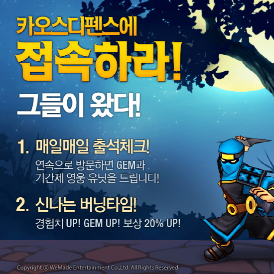 이번 이벤트는 9월29일부터 10월 1일까지 3일간 진행되며, 경험치와 캐시아이템인 ‘젬’ 20% 추가 보상 등, 파격적인 혜택을 담고 있어 추석 연휴 기간 동안 이용자들의 활발한 게임 참여가 예상된다.