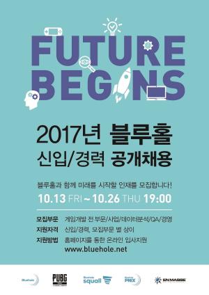 배틀그라운드가 글로벌 히트, 국내 상륙을 앞두고 있어 블루홀에 대한 구직자들의 관심이 더욱 커지고 있다. 블루홀은 나이, 전공 및 학력에 제한을 두지 않고, 역량 및 인성 인터뷰를 통해 선발할 계획이다. 최종 합격자는 12월 초에 개별 통보 예정이다.