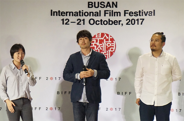 (사진=왼쪽부터 부산국제영화제에서 무대 인사 중인 ‘밤치기’의 정가영 감독 겸 배우, 박종환 배우, 형슬우 배우)