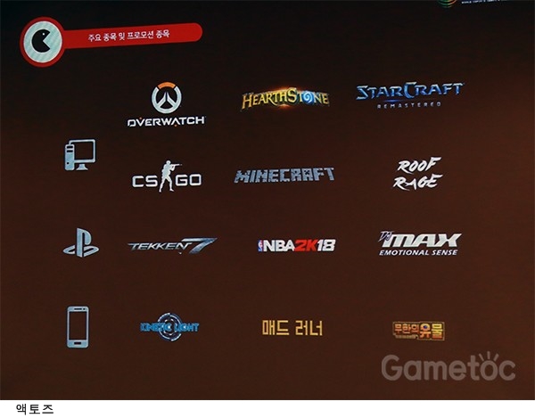 A01 지역에서는 액토즈가 주관하고 아이덴티티 엔터테인먼트가 주관하는 대규모 e스포츠 이벤트 ‘WEGL(World Esports Games & Leagues) 파이널’이 열린다. 이 곳에서는 ‘오버워치’, ‘하스스톤’, ‘스타크래프트: 리마스터’, ‘카운터스트라이크: 글로벌오펜시브’, ‘마인크래프트’, ‘철권7’, ‘NBA 2K18’ 등 12개 종목의 결승전이 나흘 내내 펼쳐진다. 액토즈도 넥슨과 동일한 300부스를 마련했다.