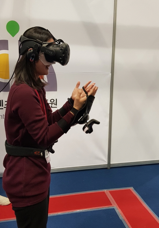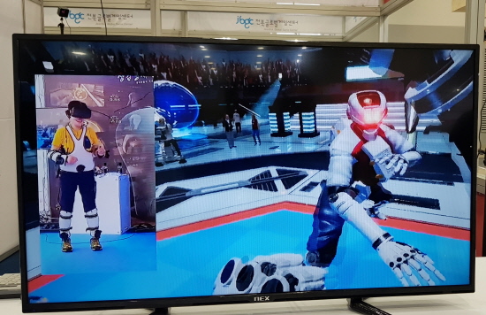 그는 “두 명의 체험자가 하나의 가상현실 공간에서 태권도 대련하는 네트워크 버전을 선보였다. 어지러움도 없고, 몰입감도 높다. 각각 6m×6m의 경기장 콘셉트 부스에서 체험하는데 방문객들이 호응이 좋다”고 말했다.
